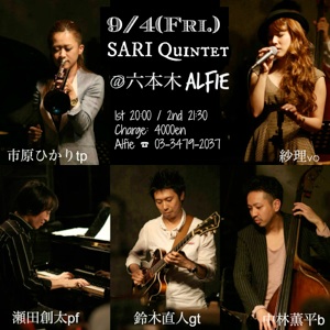 ■9/4(Fri.)紗理Quintet@六本木 Alfie ◀︎リーダーライブ