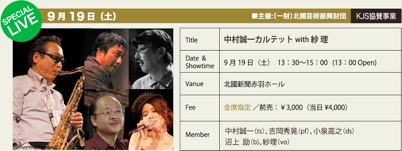 ■9/19(Sat.)中村誠一with紗理@金沢JAZZ STREET 北國新聞赤羽ホール